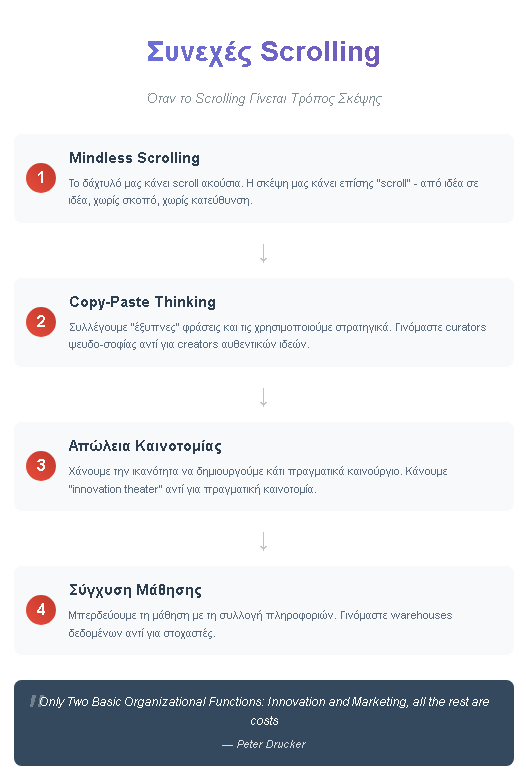Γιατί το Συνεχές Scrolling δεν είναι τεχνολογικό πρόβλημα. Είναι πρόβλημα συνείδησης. Και η συνείδηση, όπως και η κριτική σκέψη, δεν μπορεί να αυτοματοποιηθεί.